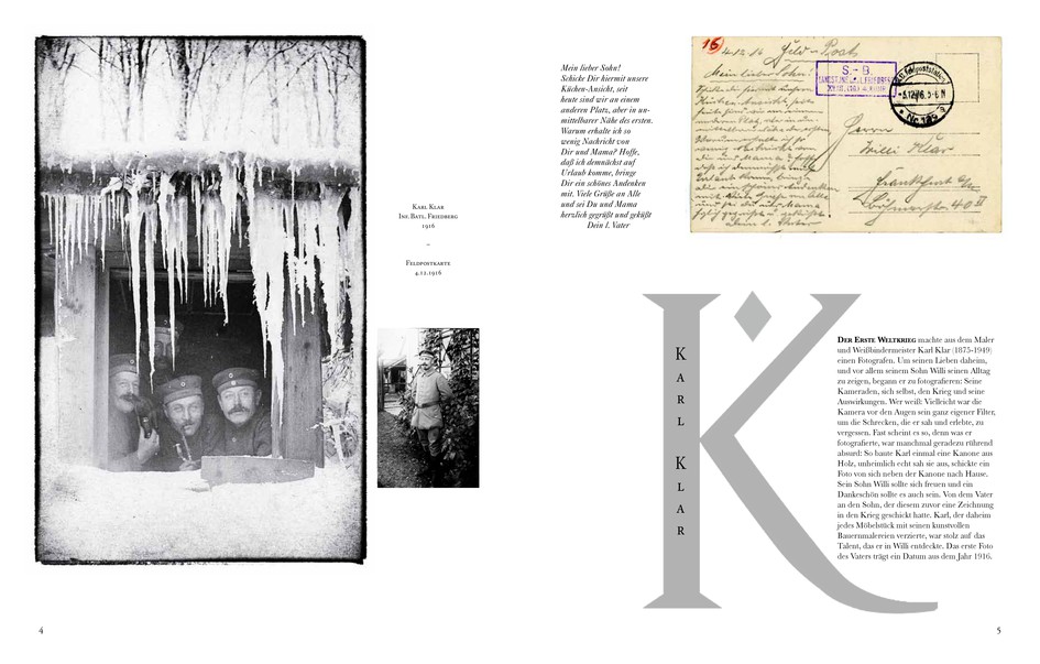 Karl Klar (1875-1949) war ein leidenschaftlicher Fotograf. Während des I. Weltkriegs schickte er fast täglich eine Feldpostkarte mit einem selbstfotografierten Bild nach Hause.